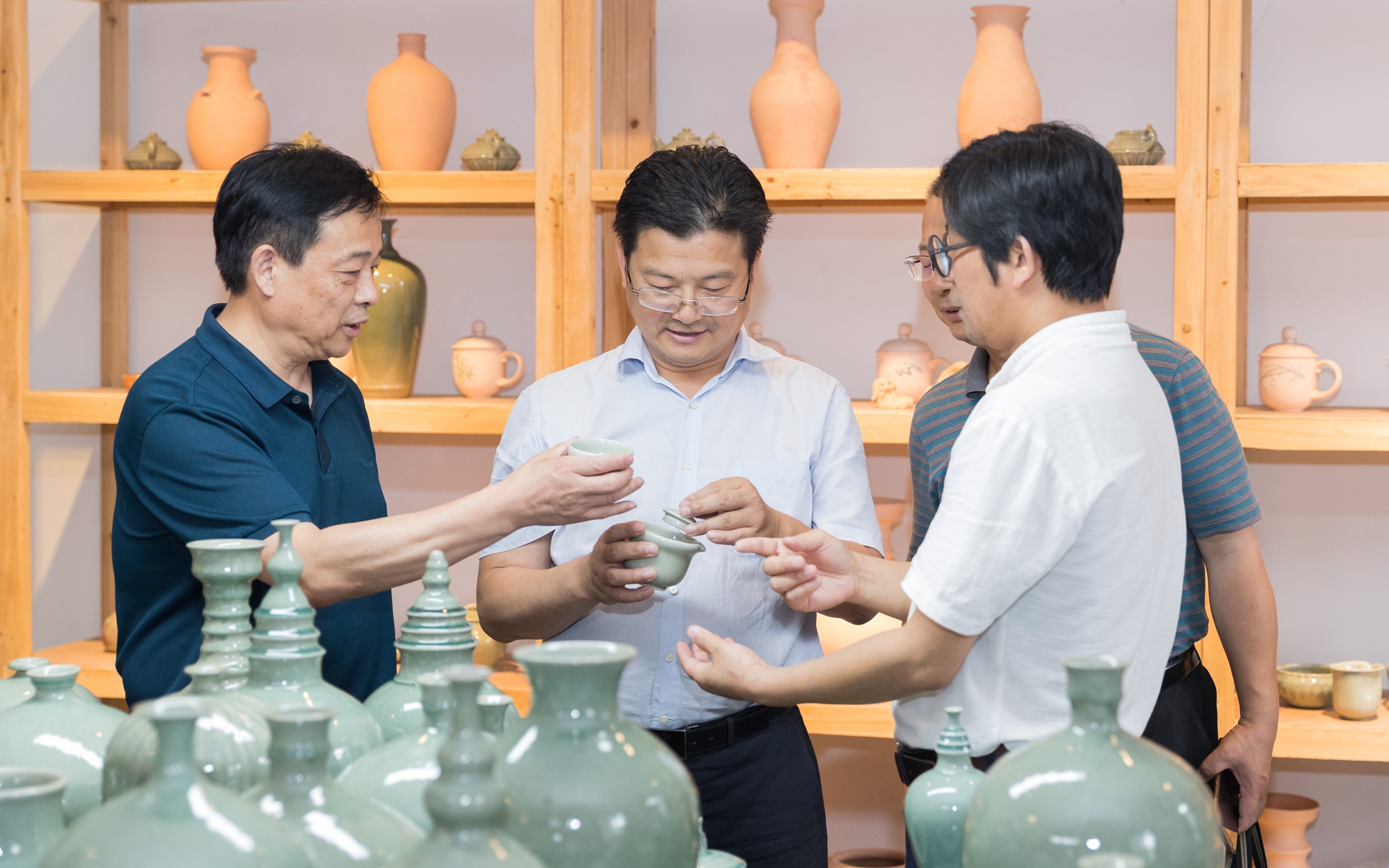 在beats365官方网站岳州窑协同创新中心,陈爱林仔细察看了岳州窑成品陶瓷,详细了解了岳州窑制作流程。