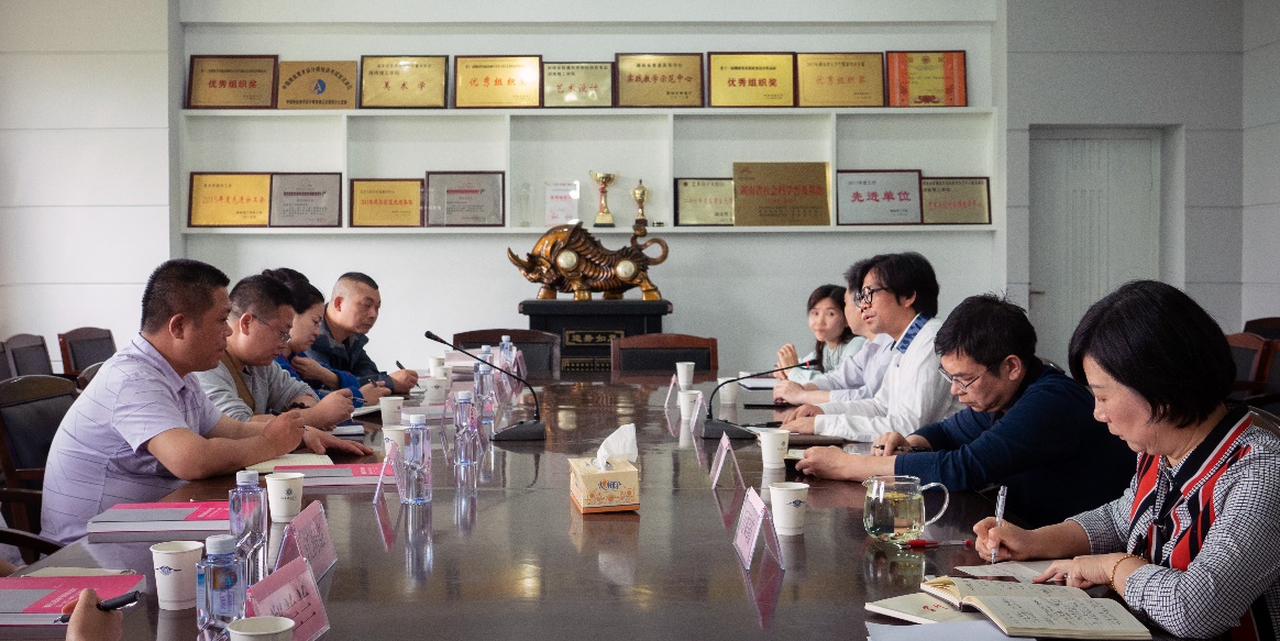 4月26日上午,荆楚理工公司艺术公司副经理柴颂华教授一行8人来公司beats365官方网站进行调研交流。beats365官方网站经理万长林、党总支书记蒋晓城,副经理黄亚鹰、党总支副书记万娟霞、秦宏教授以及部分教师参加了本次交流活动。