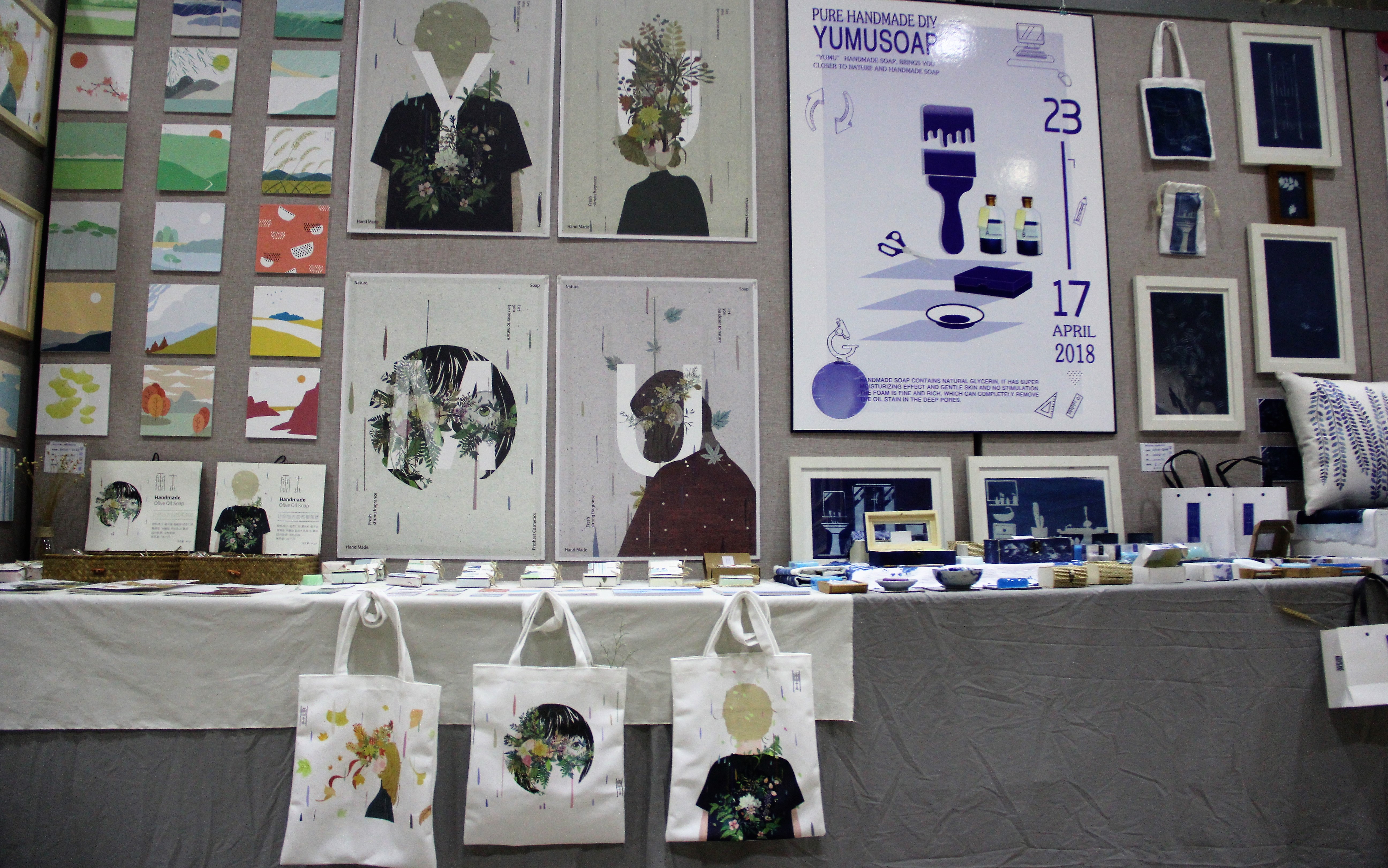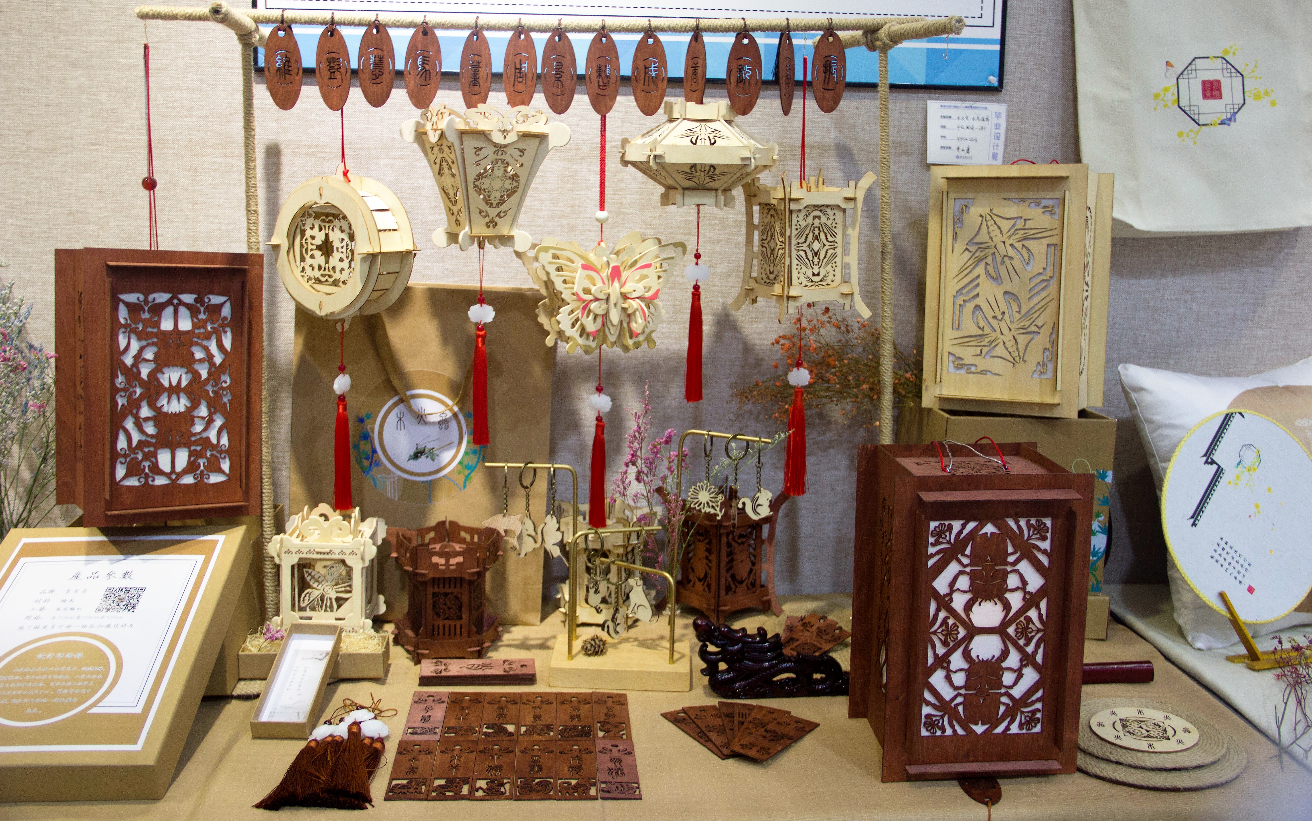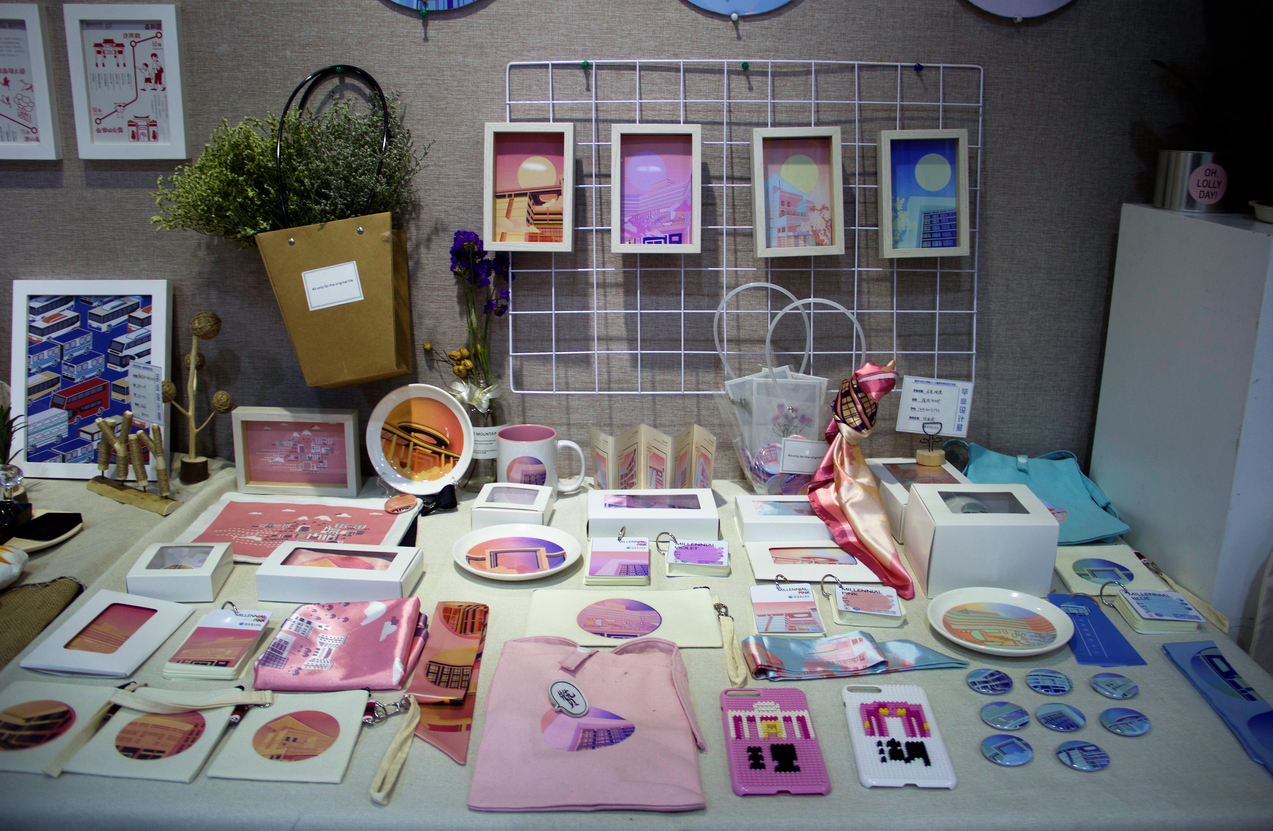 毕业生们的作品充满了天马行空的想象和鬼斧神工般地创作。有各种各样的艺术与商业结合而成的产品包装、现代又复古的贺卡与书签、大气的原创海报,更有抱枕、衣服、装饰画、摆设小玩具等不同形式的作品,均巧夺天工、玲珑剔透、真心实意,让参观者们流连忘返!