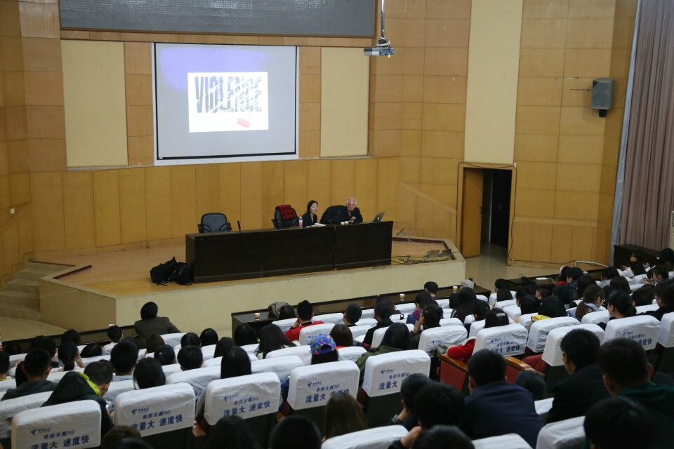 讲座上,Mervyn Kurlansky教授从设计的管理与法则、自己的作品、公益设计、设计师怎样与设计发生关系几方面向我们分享了设计的魔力,提出要用“不同的视角看待事物”“做有用的设计”“设计源于生活”“答案就在问题里”的新思路。同时要注重研究、社会、设计师理念、客户要求的结合,从中找出最好的创意点。他详细地解释了“五角设计”、“倒三角”的理念,并提出重视创造者的重要性。