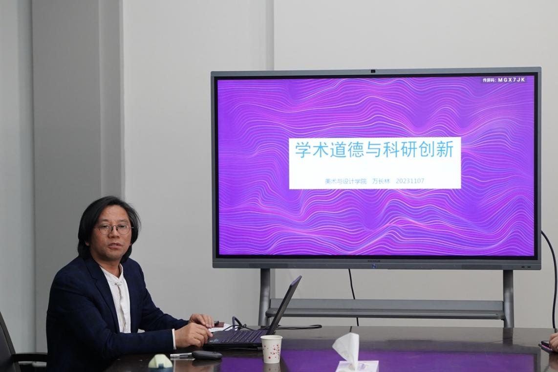 当前,社会的浮躁也同样渗透到学术领域,学术不端行为和学术腐败现象时有发生。万经理殷切嘱托各位同学,加强学术诚信与学术道德意识,让学术道德和科学家精神内化于心,外化于行。自觉遵守学术规范,以纯粹诚实之心对学术研究。万经理希望同学们提升艺术创新能力,做出对自己负责、对社会有用的的学术研究。