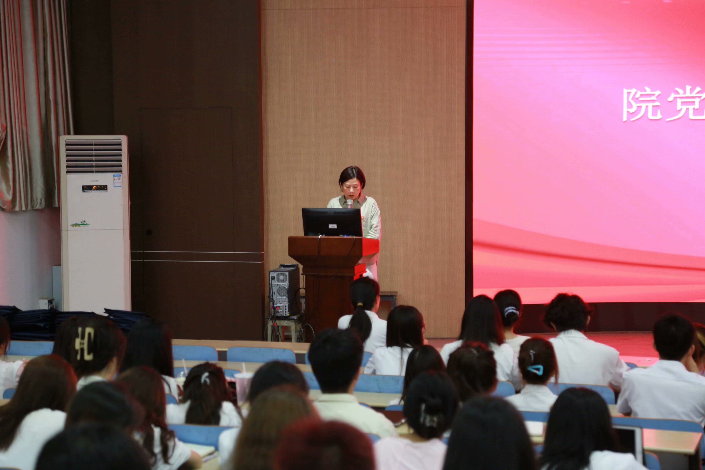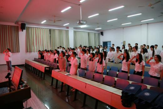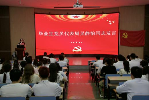 殷欣妍同志带领全体毕业生党员重温入党誓词,周吴静怡同志作为毕业生党员代表发言。