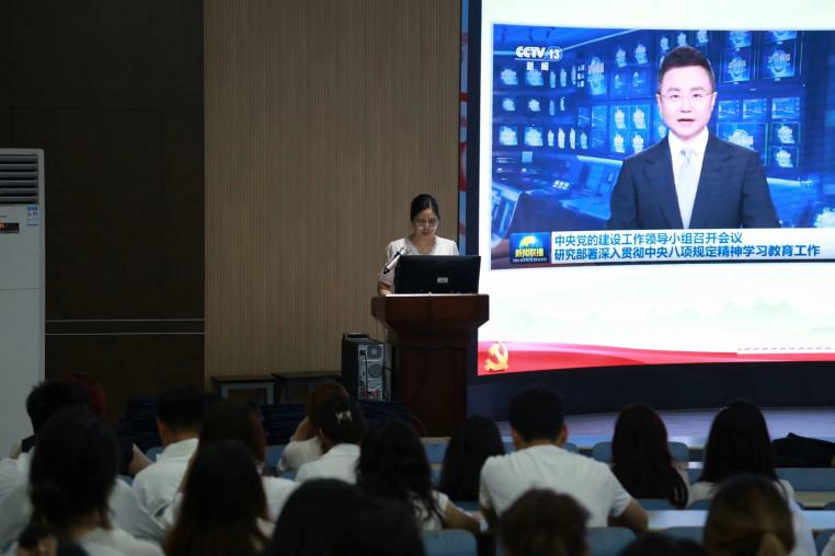 支部书记余燕老师讲授题为《扎实开展学习教育,锲而不舍推动作风建设取得新成效》主题党课,教育引导毕业生党员加强自身作风建设,提高党性修养,强化责任担当,发挥先锋模范作用。