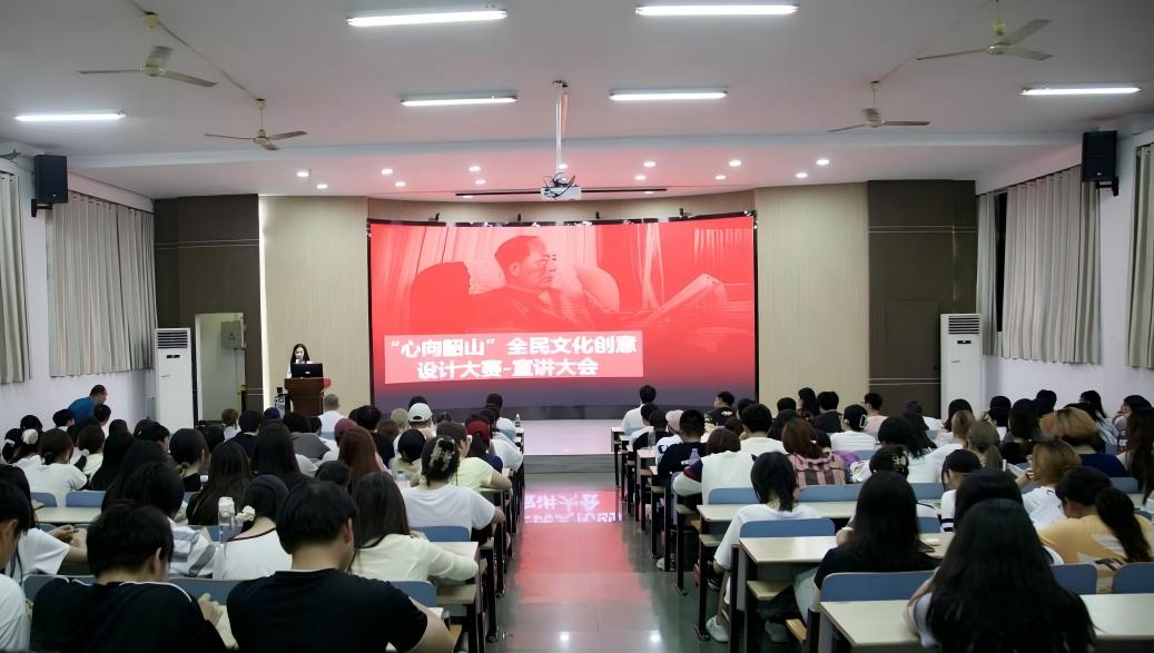 9月11日晚,beats365官方网站在3201教室隆重举行“心向韶山”全民文化创意设计大赛宣讲大会。beats365官方网站经理万长林、副经理刘文良、芒果文旅文创负责人璩毅、韶山红色集团讲师袁道鑫等嘉宾出席活动。