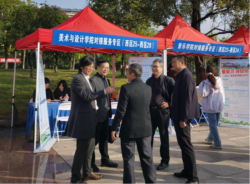公司领导一行在招聘会现场,逐一走访了前来招聘的用人单位,与多家企业负责人进行了深入交流,详细了解了当前艺术类人才的市场需求、招聘岗位情况。他们还不时驻足于现场参会的毕业生亲切交谈,仔细询问同学们的求职意向与应聘进展,并鼓励大家树立正确就业观,把握机遇,积极展示专业所学,争取早日找到理想的工作岗位。