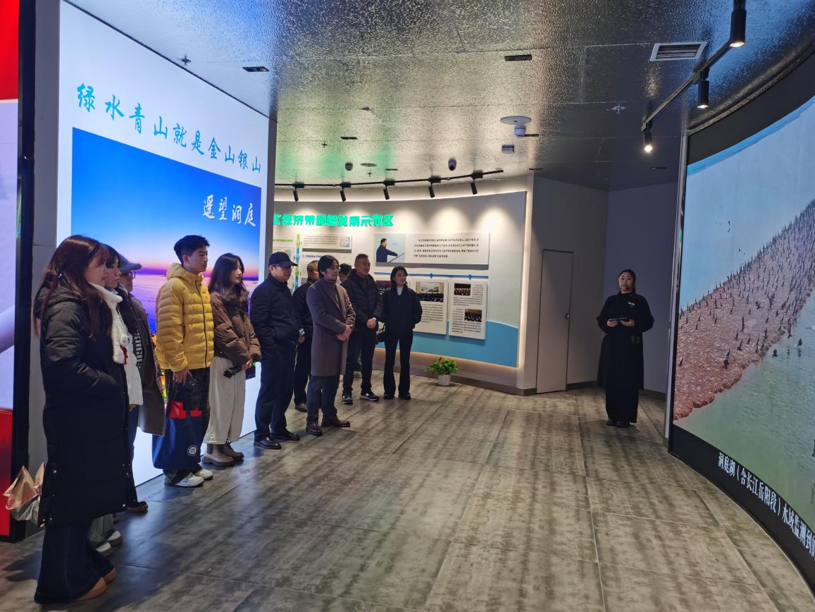 随后,师生党员来到位于七里山水文站的“守护好一江碧水”实践基地。在这里,通过丰富的影像与数据资料,大家深入学习理解习近平总书记视察岳阳时提出“守护好一江碧水”的重大意义,直观感受岳阳干部群众牢记总书记的殷殷嘱托,通过一系列生态治理举措让巴陵大地展现碧水蓝天。候鸟的欢歌、江豚的微笑、麋鹿的倩影相映成趣,大屏幕展现出的3D影像使大家深切认识到绿水青山就是金山银山的深刻内涵。