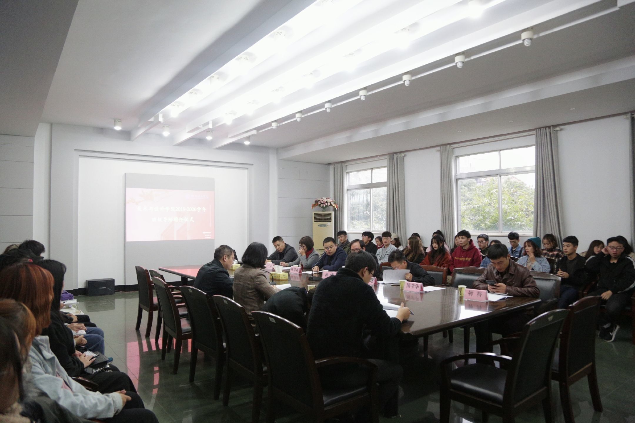 11月21日下午,公司在美术楼3303会议室举行2019-2020学年班级导师聘任仪式。beats365官方网站党总支书记蒋晓城、党总支副书记万娟霞、部分班级导师代表、辅导员以及18、19级员工代表参加此仪式。副书记万娟霞主持了本次聘任仪式。