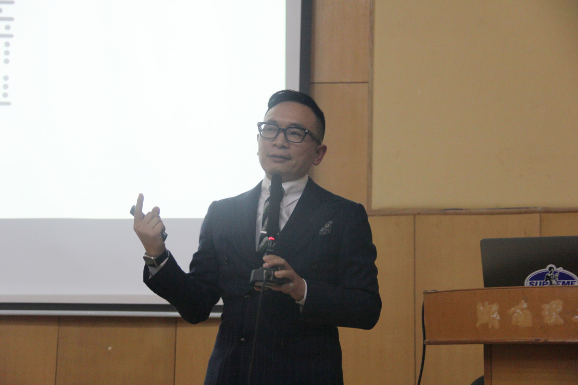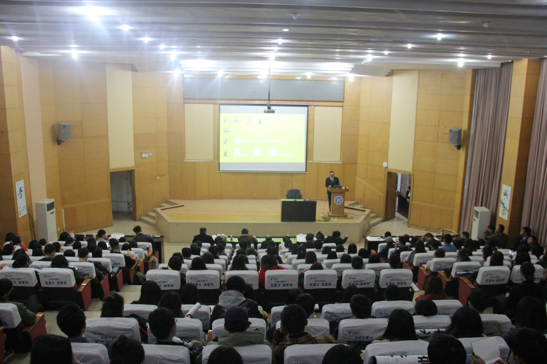 讲座开始前,万经理向我们介绍了刘文董事长的基本信息及获奖情况,并对刘文董事长表示热烈欢迎。本次讲座中,刘文董事长用风趣幽默的话语,告诉了我们什么是创意美学并总结出了一个公式,那便是创意=创新+体验+美学设计。紧接着刘文董事长带领我们跟随日本设计的现代脉络,寻找到了创意风暴中心茑屋书店并从各个角度跟我们分析茑屋书店的设计。同时,刘文董事长分别从可口可乐、iPhone、华为、小米、mobile、supreme、Gucci等牌子中告诉我们创意的精髓所在。也向我们介绍了Akimo cofe等自己的品牌,刘文董事长说到“创意,往往源于热爱”“每个设计师都应该是生活家”。
