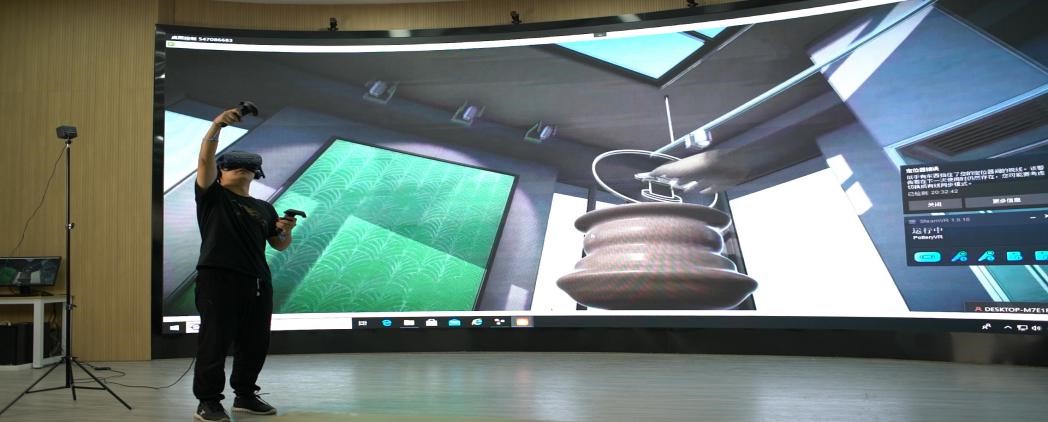 员工运用虚拟仿真设备做设计实践