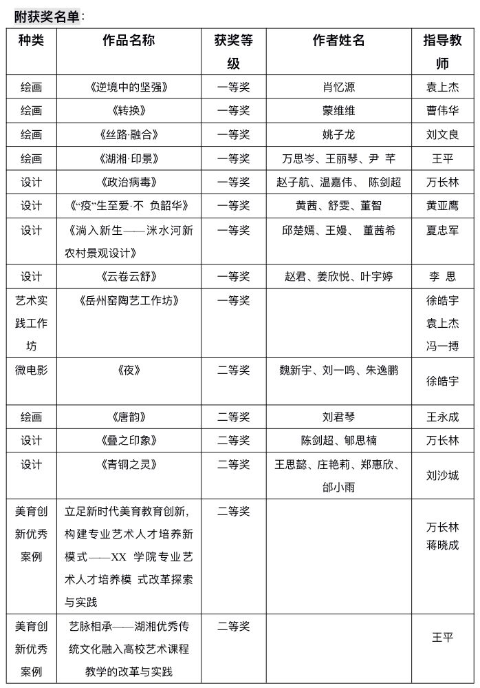 近日,湖南省第六届老员工艺术展演获奖结果揭晓,公司报送的13件员工作品、2件教师作品全部获奖,其中员工作品荣获一等奖9项、二等奖4项,教师荣获美育改革创新优秀案例二等奖2项。