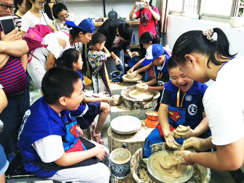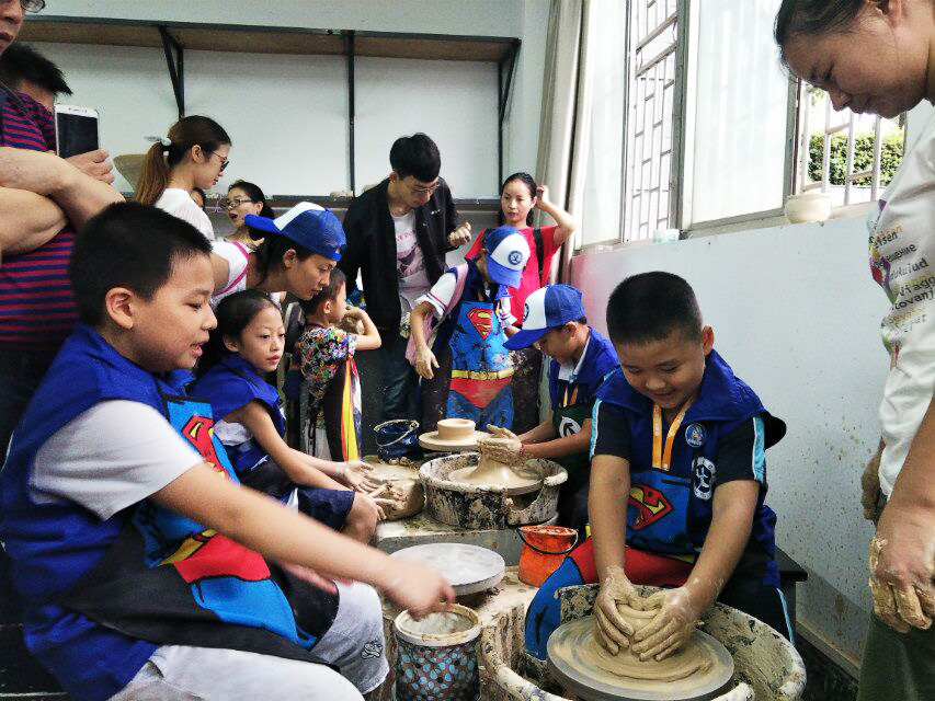 在老师的指导和帮助下,小记者们已经可以独立完成陶瓷形状的制作,更是赢得了围观人群的惊叹和鼓励。