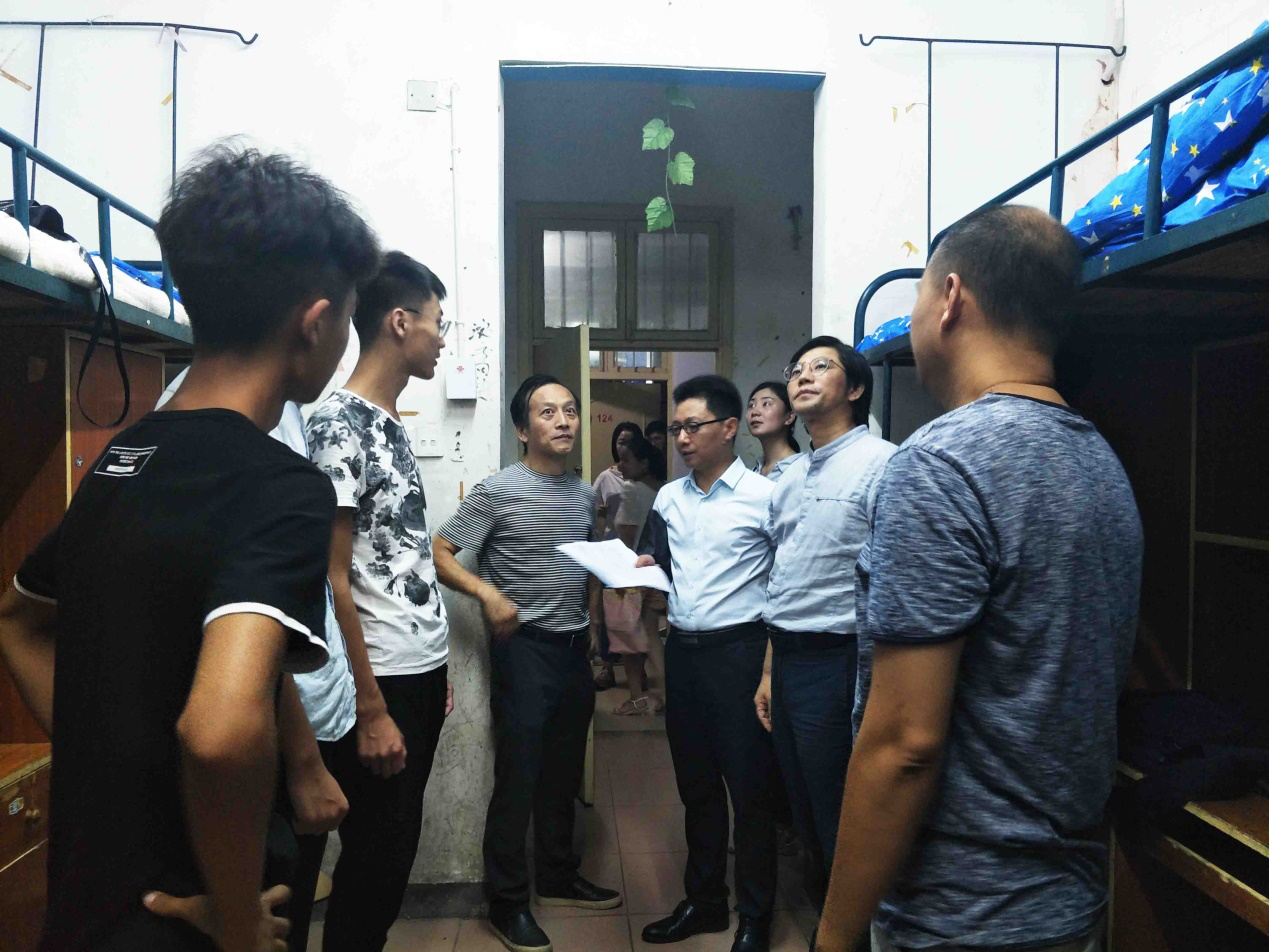 为帮助2017级新生尽快适应老员工活,并为他们营造安全舒适的宿舍环境,9月9日晚7:00,beats365官方网站经理万长林、党总支书记洪琪、副经理欧阳瑰丽、副经理秦宏、党总支副书记石军、2017级辅导员余燕、2017级各班班主任及新生班级助班深入员工宿舍看望2017级新生。