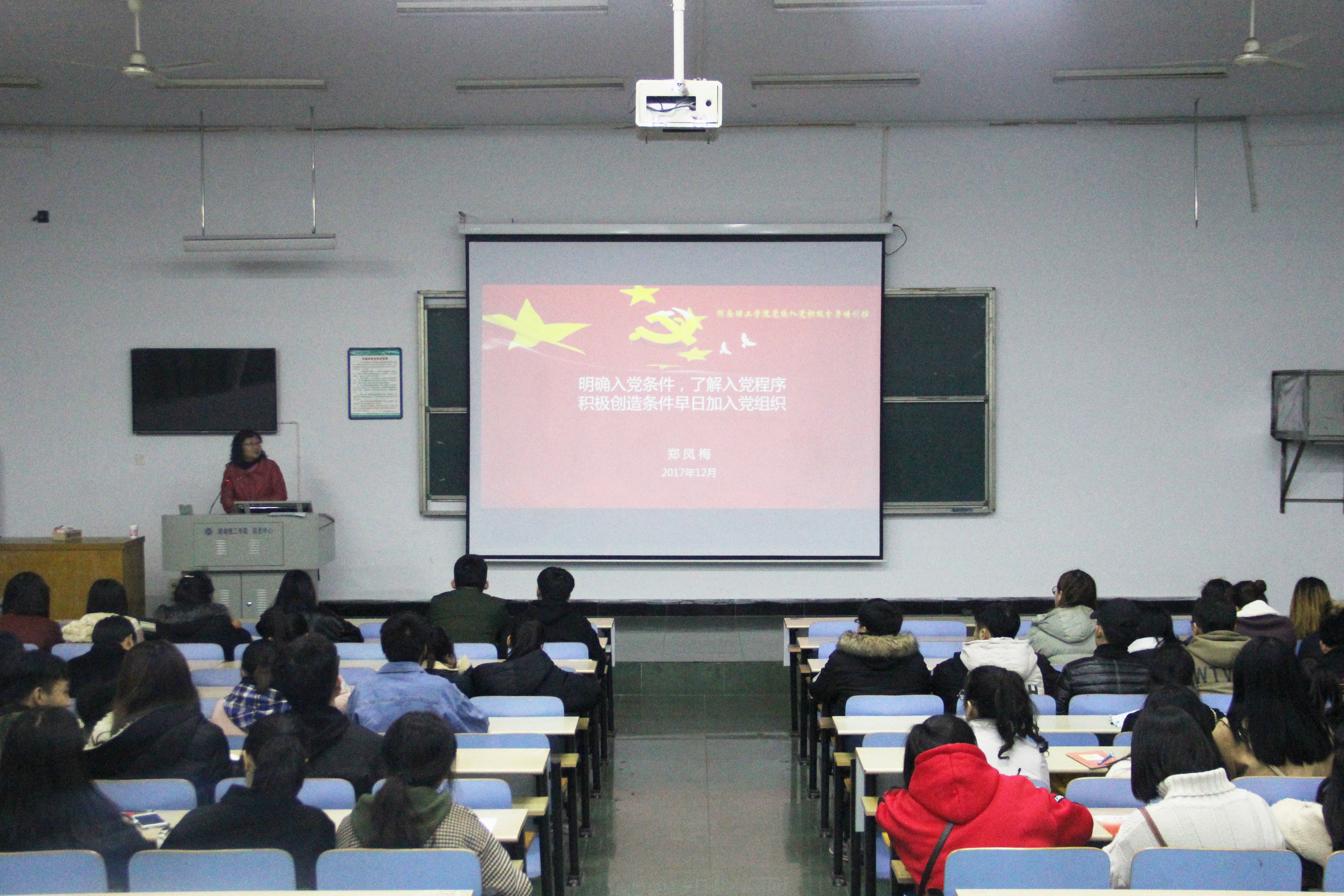 为加强对入党积极分子的培训工作,深化党的基本理论、基本路线、基本纲领和基本经验教育,进一步提高入党积极分子、入党主要发展对象对党的基础理论素养,湖南理工beats365官方网站党校培训分会场美术beats365官方网站党总支根据党委组织部培训规程,并结合公司实际情况,定期举办入党积极分子培训班第二讲。公司第三十七期入党积极分子培训工作于2017年12月7日晚19:00在美术楼3201开课,并由湖南理工beats365官方网站党校副董事长郑凤梅主讲。beats365官方网站一百余名入党积极分子、入党主要发展对象参加了培训。美术beats365官方网站党支部书记、16级辅导员李一飞担任主持。