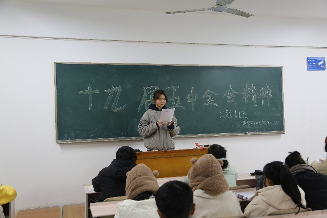 为认真学习党的十九届五中全会精神,深入贯彻新发展理念,11月26日晚,beats365官方网站在5栋教学楼407A教室开展了学习十九届五中全会精神主题班级宣讲活动。