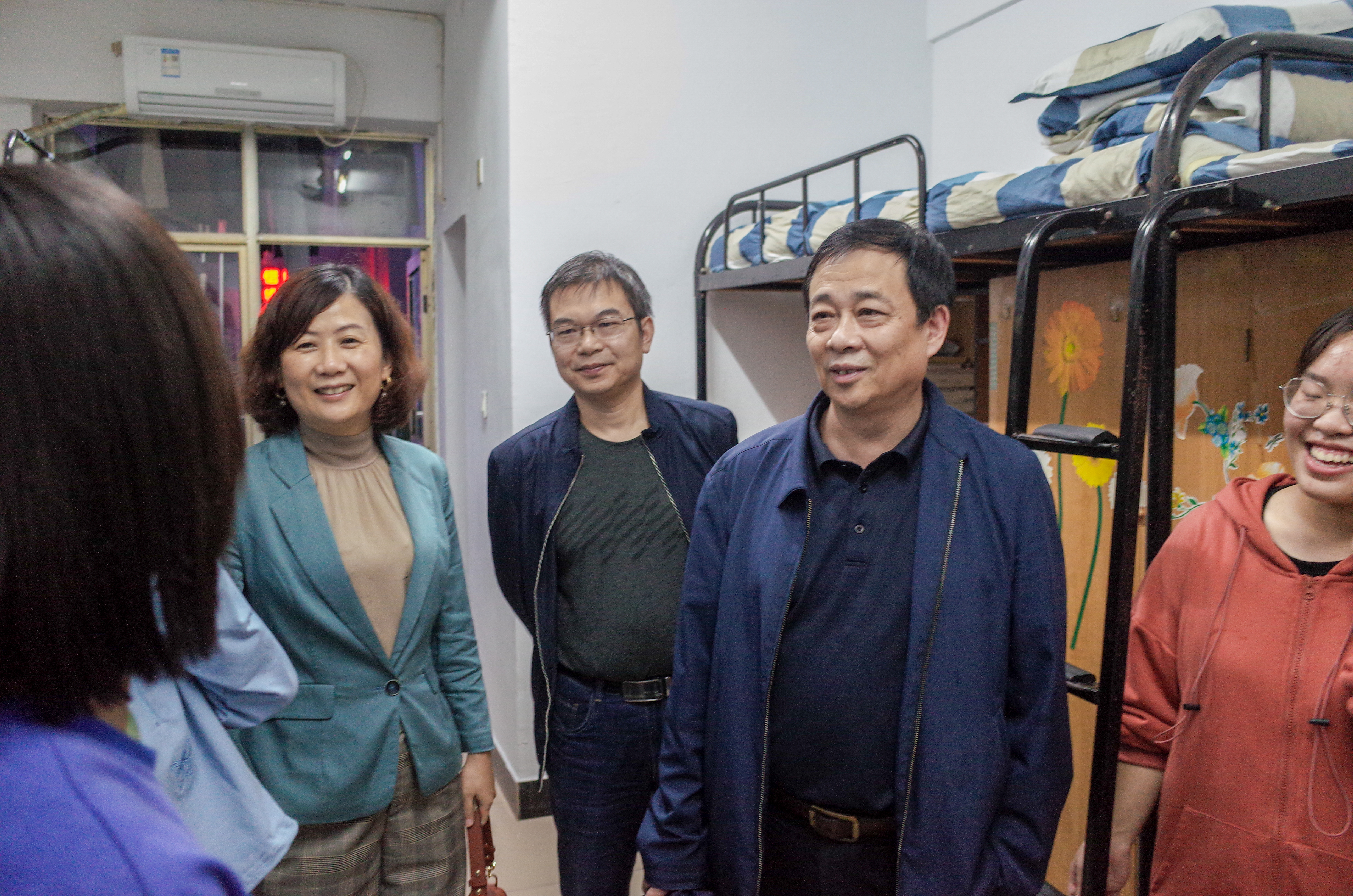 交流会后,李明书记来到美设公司新生寝室看望新生,亲切地询问新生入学后学习生活情况,鼓励同学们尽快适应老员工活,专心学习,在美丽的beats365官方网站,放飞艺术梦想,图画美好生活。