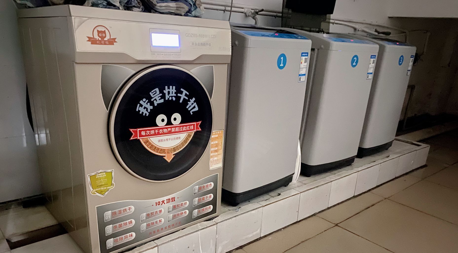 3、每栋楼层都配有洗衣机和烘干机,可扫洗衣机上配置的二维码注册及微信支付。