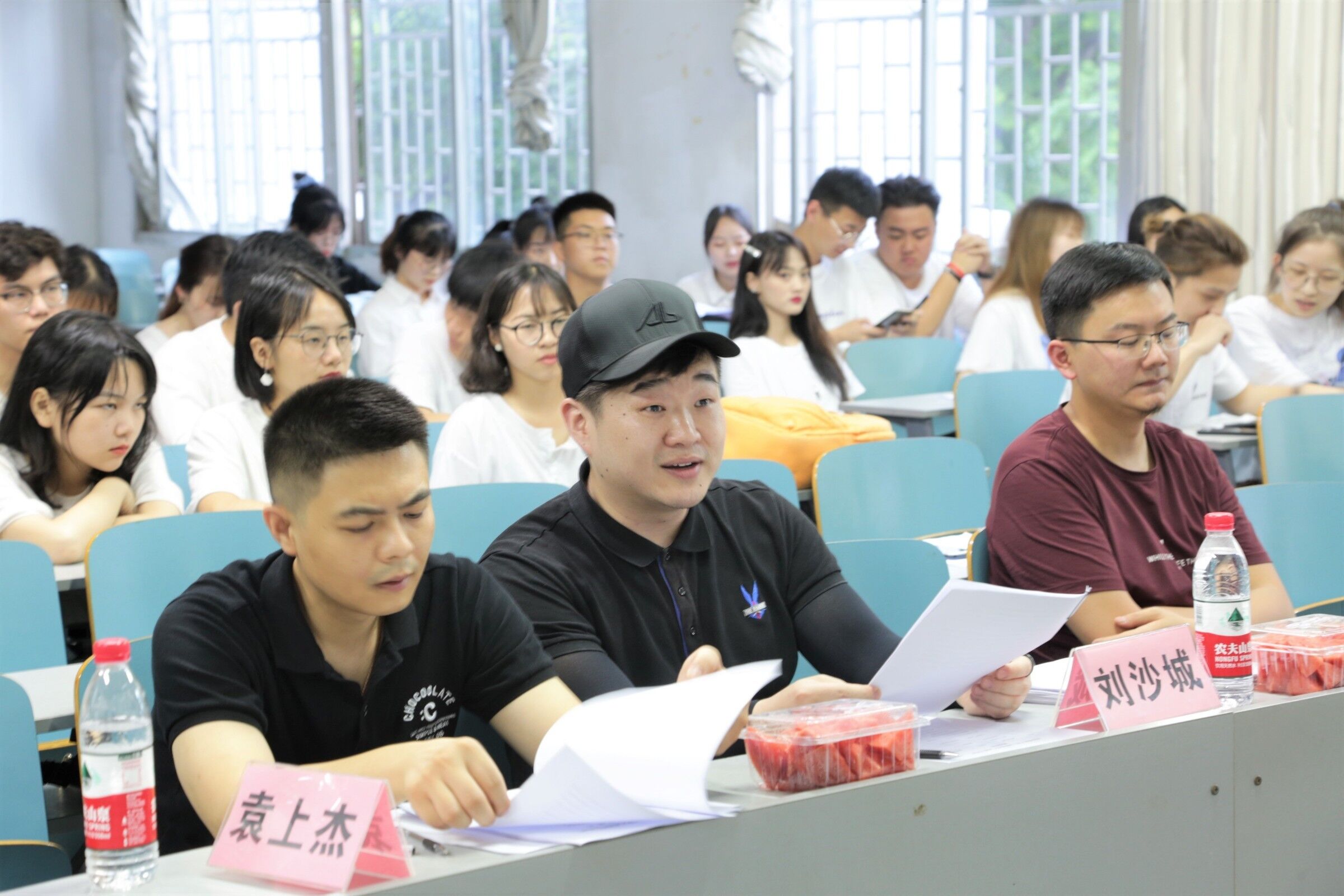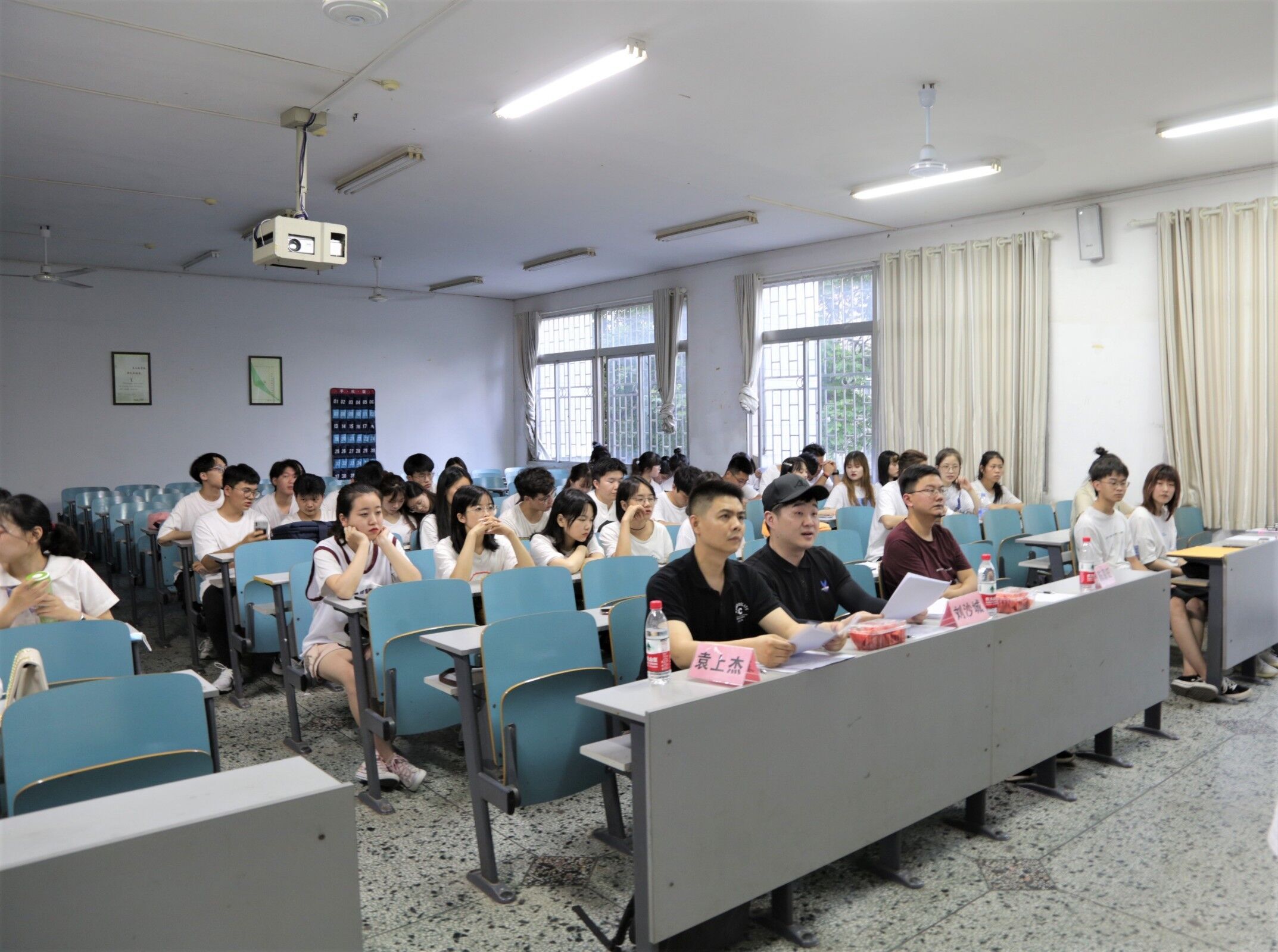 比赛分为场上汇报和答辩两个环节。活动伊始,各参赛团队的项目负责人依次上台为自己的项目做简单的汇报,随后,评委老师根据项目的可实行度,提出相关问题及建议,开拓同学们的创新思维。各参赛团队的项目立足专业基础,形式新颖、多样,充分体现出当代老员工创新素质水平。