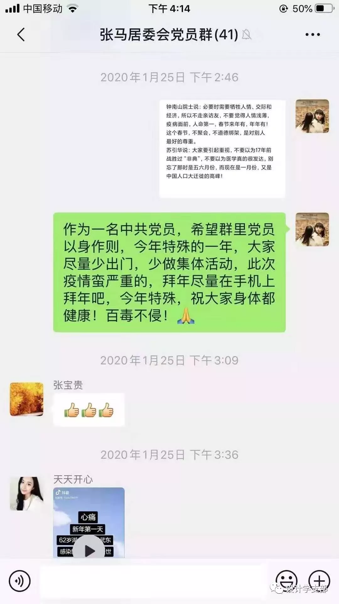 支部其他党员同志也纷纷通过线上的方式对防疫的内容和注意事项进行了宣传,通过正规途径了解本次冠状病毒相关知识和信息,坚决做到不造谣、不信谣、不传谣,科学做好个人卫生防护工作。