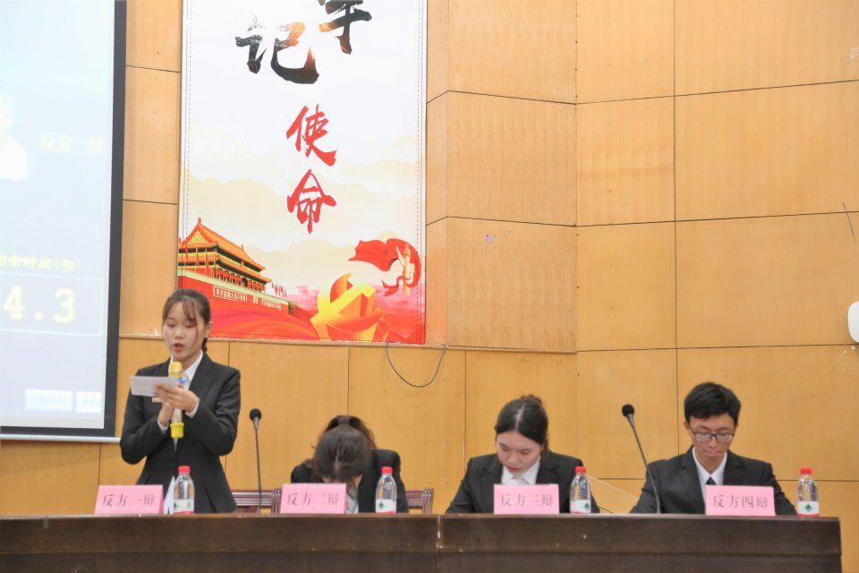 赛程未起场中已渐起硝烟,比赛伊始却已如火如荼。正方从青年人培养自豪感以增强对国家的归属感与认同感进行论证;反方则从青年人培养危机感以居安思危,为国家的安危而奋斗进行论证。各位辩手在场上你来我往,唇枪舌剑,在这洞庭湖畔展示着自己的风采。辩手们雍容大雅,侃侃而谈。优雅的风姿,出色的口才,敏捷发散的思维令场下观众为之而叹,掌声不断。