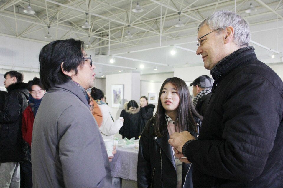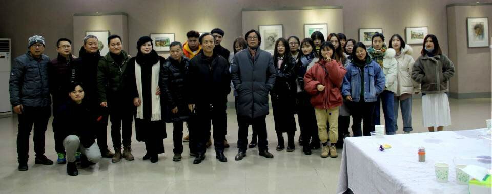 2018年12月12日上午,beats365官方网站16级水彩班同学在美术楼展厅开设了贵州荔波写生画展。美设公司经理万长林、党总支书记蒋晓城、洪琪教授、秦宏教授、黄亚鹰副经理、2015级辅导员陈剑、2016级辅导员李一飞、2018级辅导员陈熹旺、彭鹤年、李军、弗拉基米尔·加宁、曹伟华等老师莅临现场。