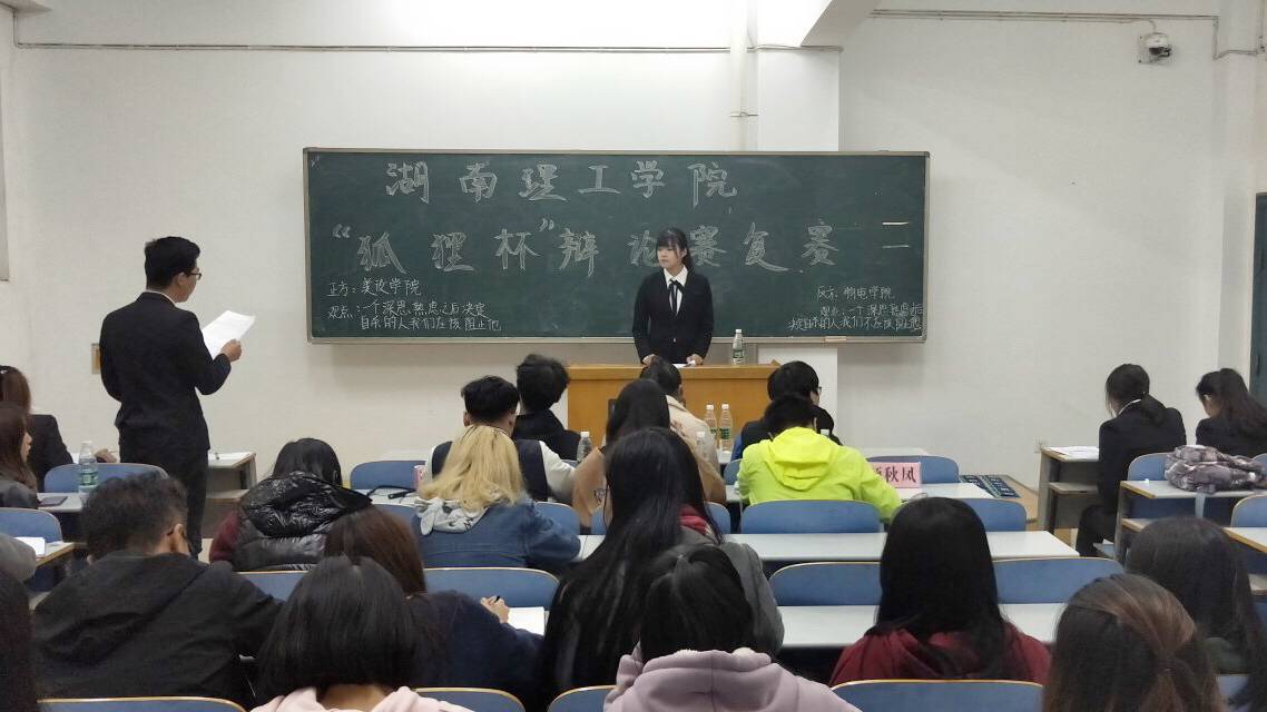 11月10日的晚上,辩论赛复赛在15栋106教室展开。正方为美设公司,反方为物电公司。本次辩论围绕着“一个深思熟虑之后决定自杀的人我们应该阻止他还是不应该阻止他”展开。