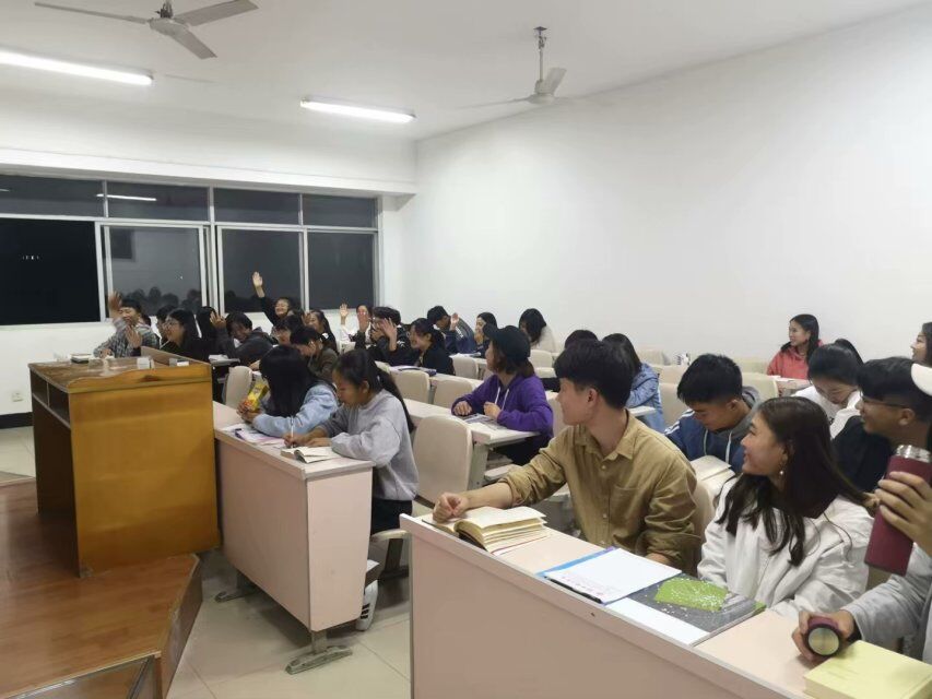 在团课的提问环节中同学们积极举手,在团支书宣讲之后,同学们对“7.2”重要讲话精神展开热烈讨论,在各抒己见中加深理解。