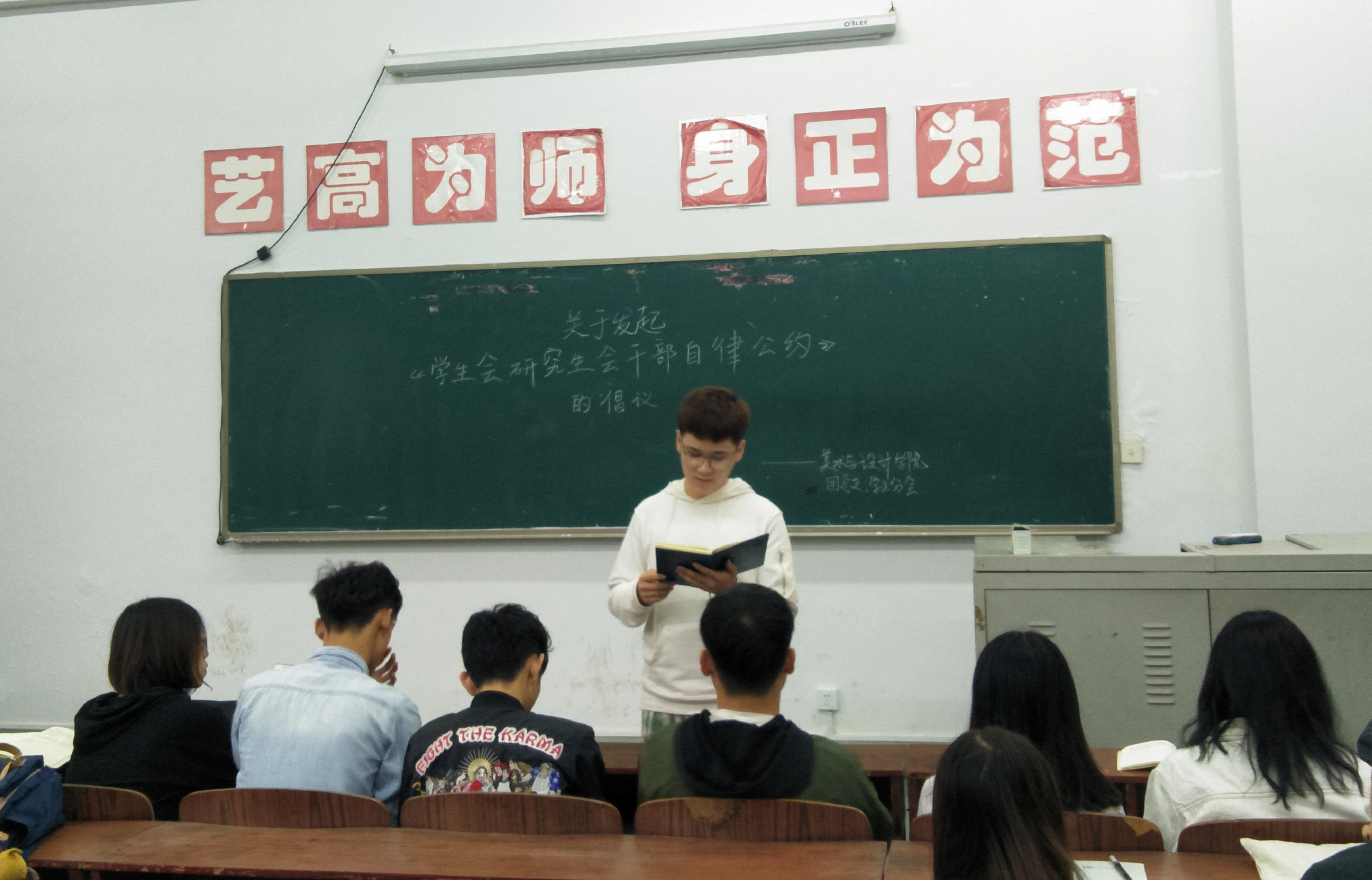 随后,在团总支副书记张庆喆的带领下,学习了《员工会、研究生会干部自律公约》。作为员工会的一份子我们一定要共同维护组织形象,更好履行工作职责,我们发起此倡议,约定如下守则: