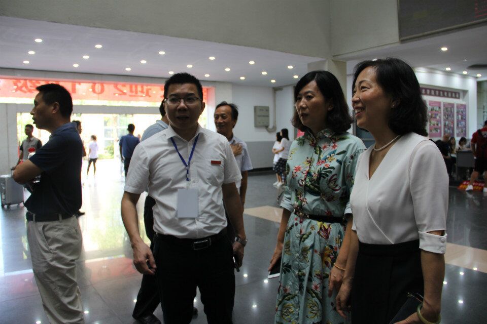 美设公司经理万长林、党总支书记洪琪、党总支副书记万娟霞来到迎新大厅,与家长和新生交谈。同时,校领导一行人莅临现场,并与院领导交流,争取把迎新工作做到最好。