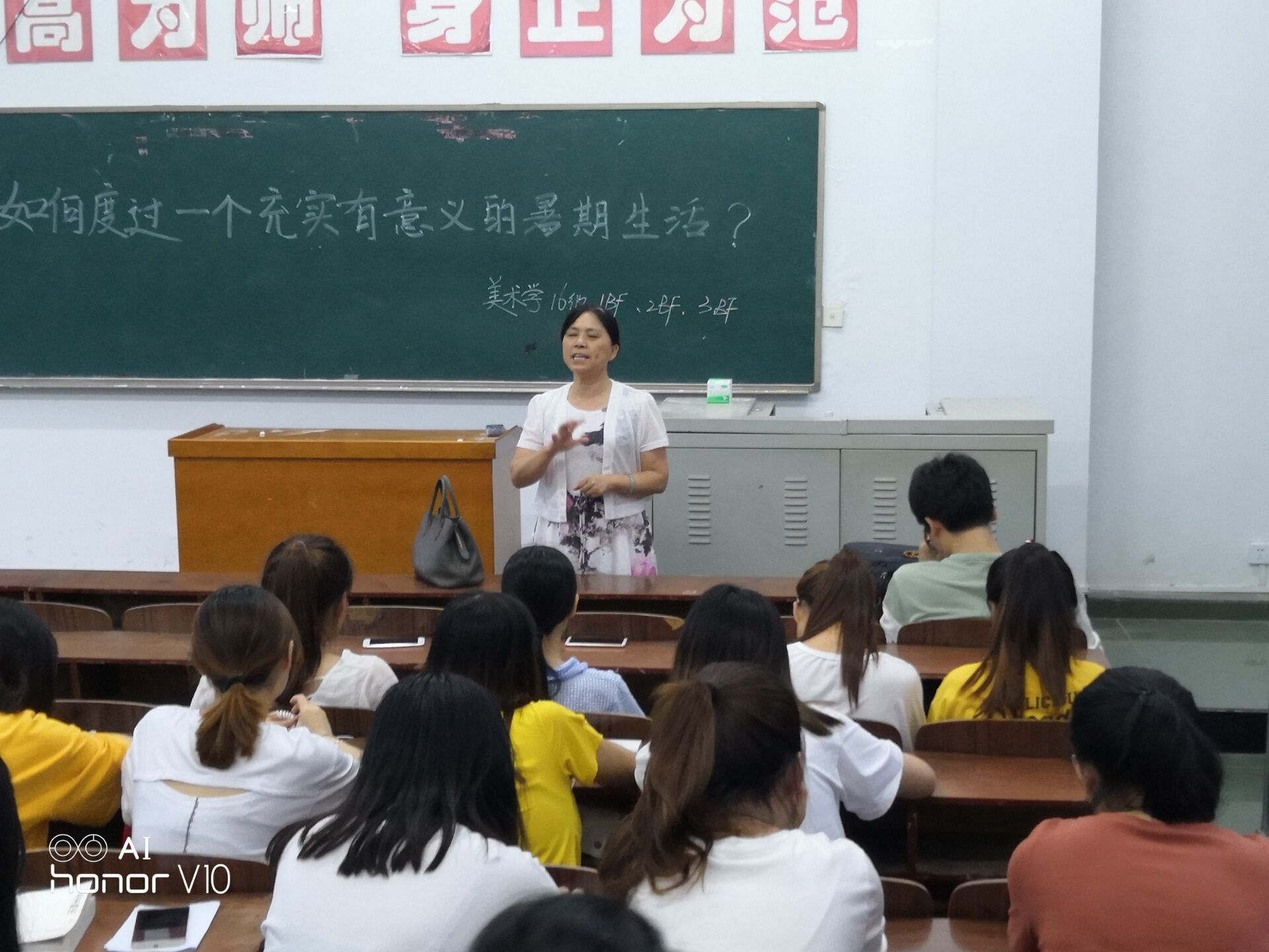 7月6日晚上,美设公司16级美学班在美术楼3208教室举行了以“如何度过一个充实有意义的暑假”为主题的交流会,会议特别邀请了班级导师王莉,与会人员有16级美术学国画班、油画班、水彩班全体同学。