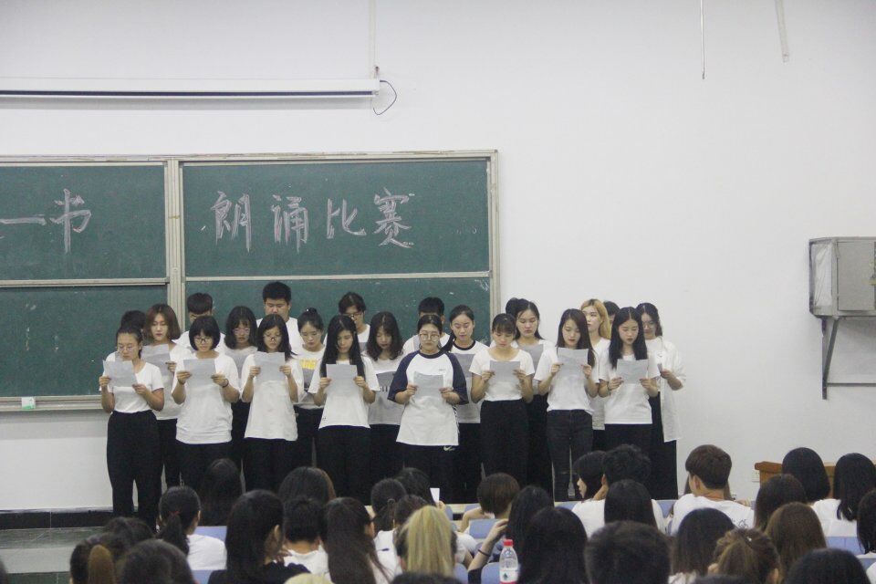 首先,伴着若隐若现的背景音乐,17视传三班首先登场,用时而激昂,时而轻柔的声音为大家献上了《巨流河》精彩片段的开端。将自己满腔的热情、抱负付诸言语,一串串语句带着她们对于《巨流河》的读书感悟叮咚落地。