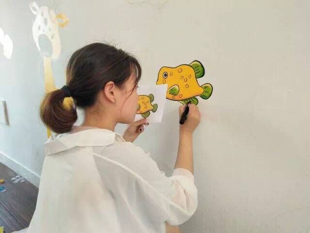 他们分工明确:有的负责构图,在墙体上勾勒出清晰的轮廓;有的负责调色,红的、黄的、白的、黑的颜料在灵巧的双手间生成七彩斑斓;有的负责涂色,拿起画笔在墙体上细致涂刷。就这样,各式各样的卡通画通过志愿者们灵巧的双手,在原本空白的墙面开始生动、鲜活起来。经过近五个多小时的精雕细琢,需要绘制的墙面基本已经全部完成。志愿者们有些许疲惫,但看着自己的辛勤成果,想着能给那些“折翼的小天使们”增添些许色彩,大家都欣慰的笑了,绘制完成的涂鸦墙也生动活泼、图文并茂。