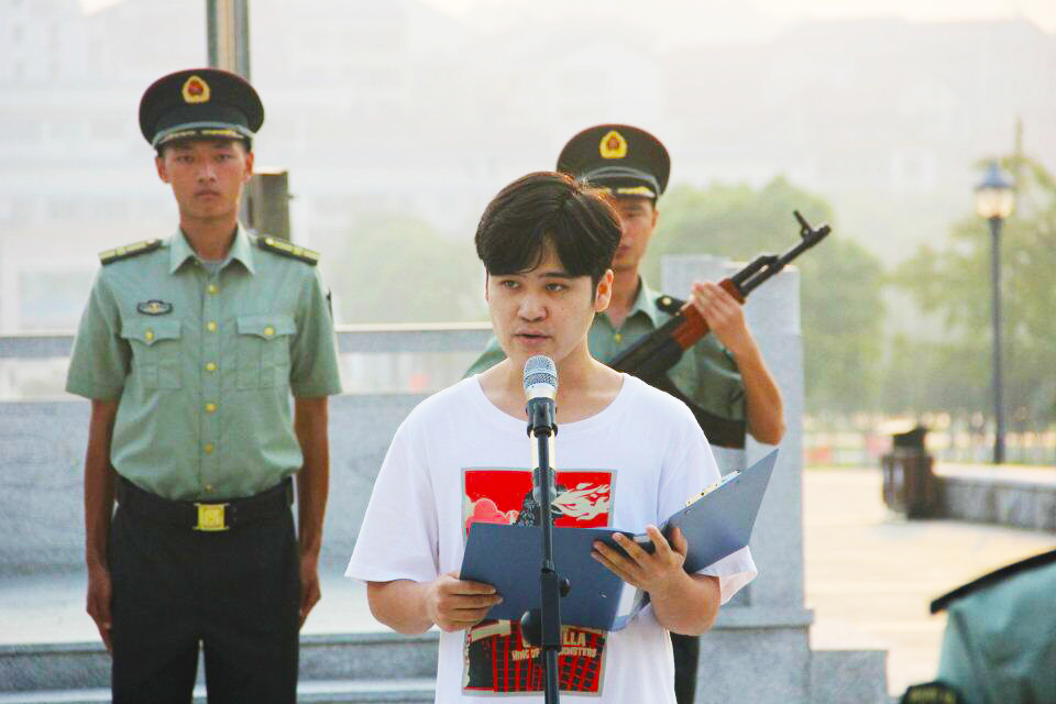 升旗完毕后,公司环境设计班的张庆喆同学代表全体员工作了主题为“在践行中成长”的发言,他号召全院同学学习运用专业知识,成为各行各业的优秀人才,承前启后,继往开来,致力于国家的现代化建设,用实际行动贡献自己的一份力量。