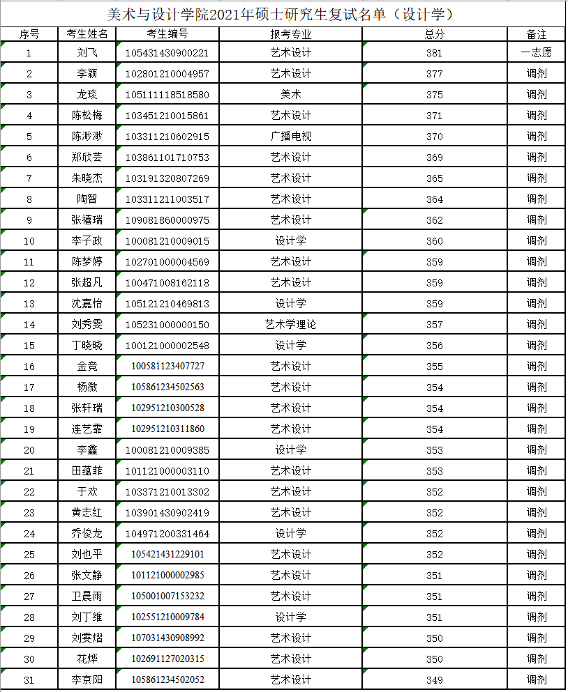 beats365官方网站2021年硕士研究生复试名单 - 设计学