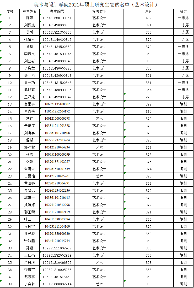 beats365官方网站2021年硕士研究生复试名单 艺术设计.xlsx