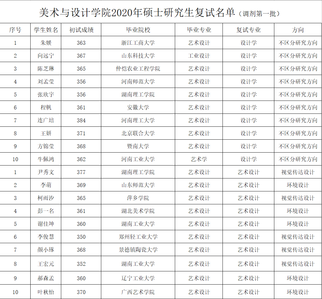 beats365官方网站2020年硕士研究生复试名单与招生复试结果(调剂第一批)