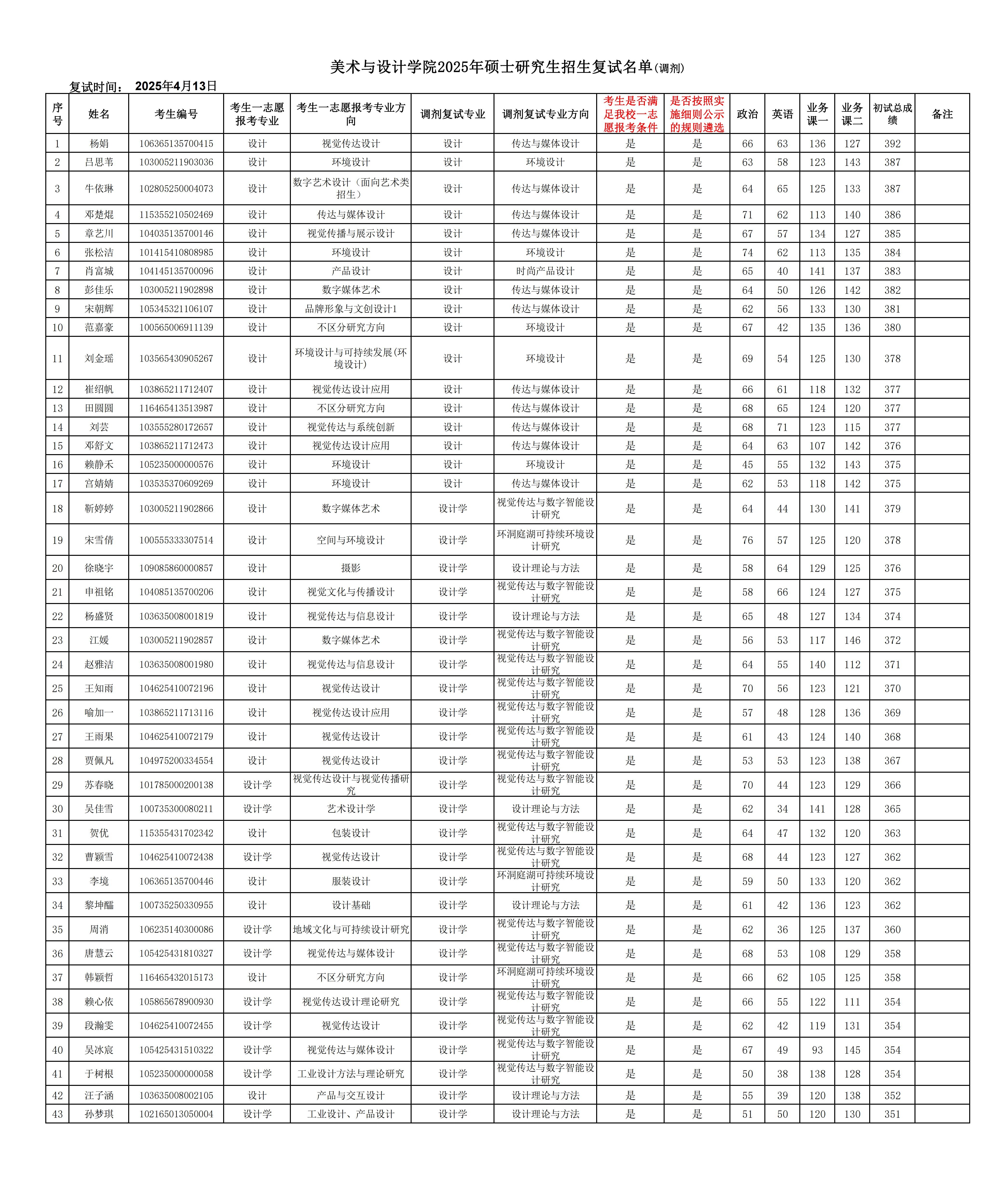 beats365官方网站2025年硕士研究生招生复试结果(调剂)