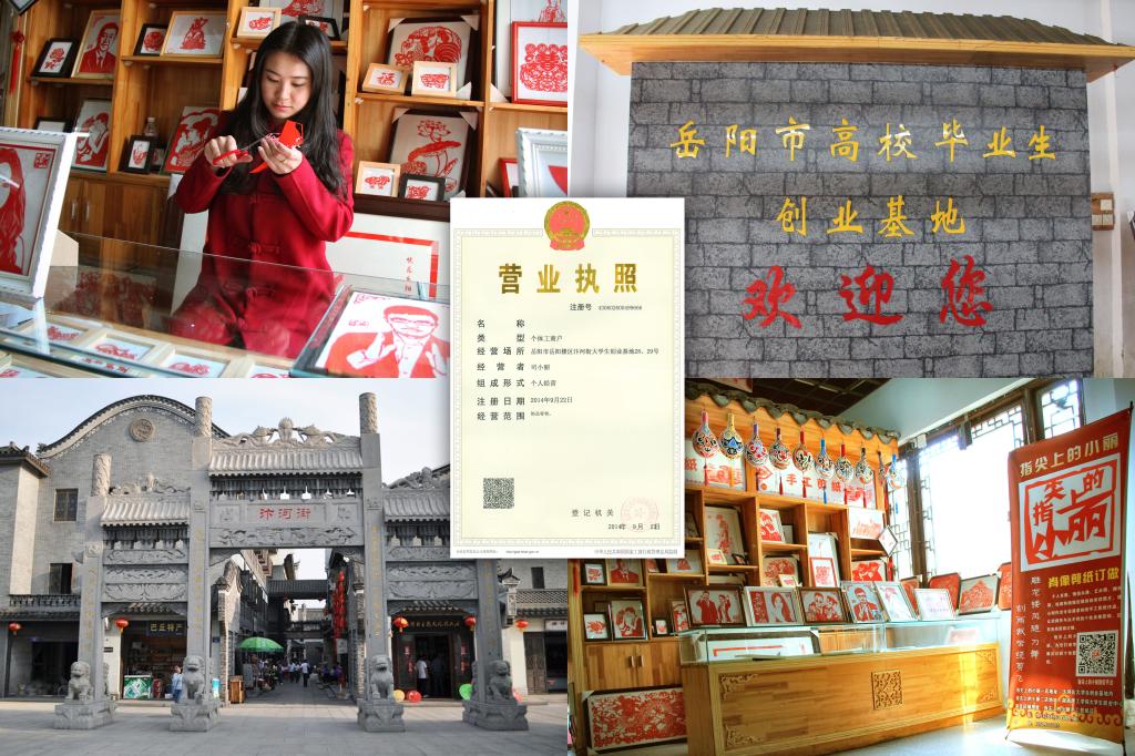 2.本项目的宗旨是弘扬中国的传统剪纸文化,这也得到了岳阳市政府的关注,同年 9 月在市政府的帮助下注册了营业执照,于 2014 年 11 月份在beats365官方网站老员工创业孵化基地中创办了第二家“指尖上的小 丽”手工剪纸店 。