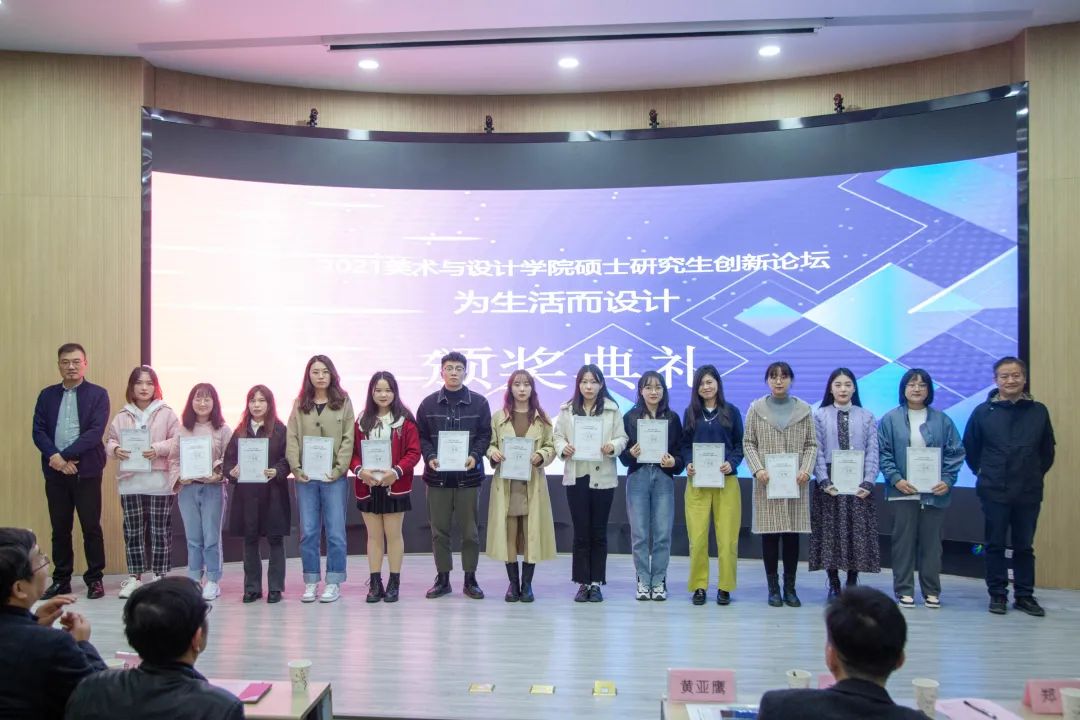 为提高公司研究生的创新思维与学习能力,构建学术平台,拓展学术素养,营造浓厚的学术氛围,公司于11月15日晚在美术楼3201教室举行“为生活而设计”硕士研究生创新论坛暨颁奖仪式。校研究生院经理周从山、beats365官方网站经理万长林、党委书记蒋晓城、全体院领导、研究生导师、研究生以及2021级视觉传达和环境设计专业的同学参与此次创新论坛。