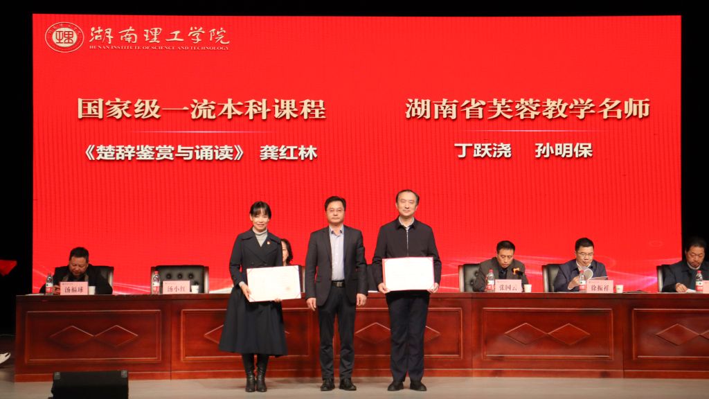会上,教务处负责人宣读了《关于表彰近五年突出本科教学成果的决定》,校领导为获奖教师代表颁奖并合影留念。